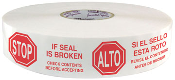 STOP IF SEAL IS BROKEN TAPE - ENGLISH AND SPANISH